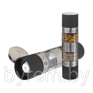 Инновационный механизм позволяет легко наполнять измельчитель и попеременно перемалывать 2 специи.