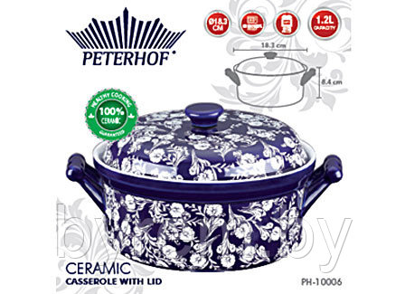 Кастрюля керамическая с крышкой Peterhof PH 10007 для варки, тушения, запекания и сервировки.